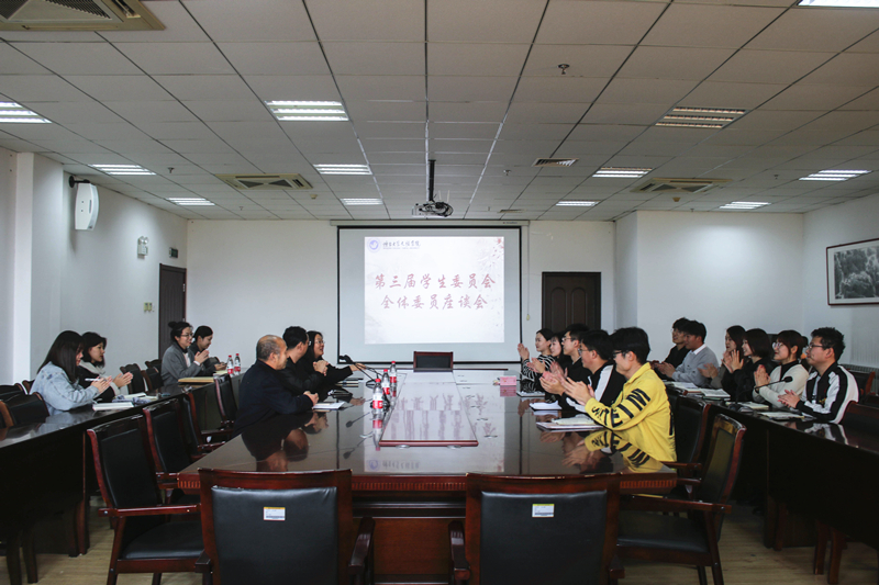 为进一步推动学院发展,充分发挥学生委员会的职能作用,更好服务同学,11月21日下午,我院第三届学生委员会全体成员座谈会在二教六楼会议室召开。院长于光辉、党委书记唐家弘、副书记李荣梅出席会议。