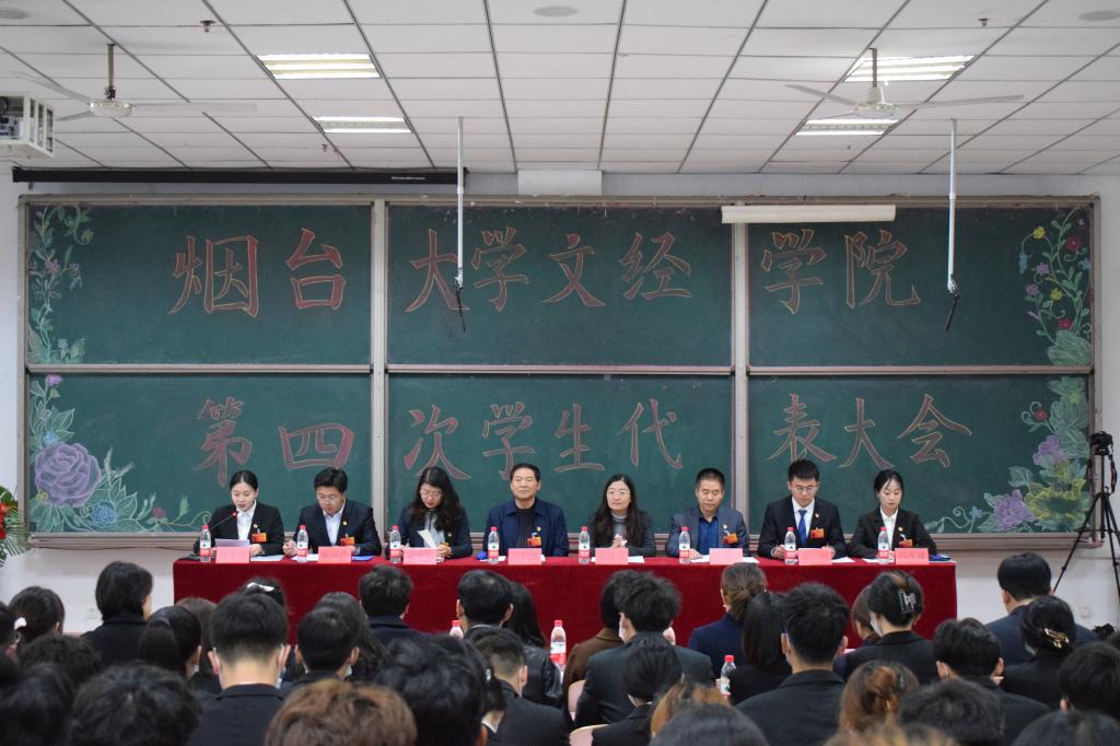 2020年11月8日上午9:00,烟台大学文经学院第四次学生代表大会在二教115教室胜利召开。会议由院学生会第三届委员会主席团主持召开,来自10个系的197名学生代表出席会议。烟台大学文经学院副院长张仁杰、组织统战部长张琼玉、团委书记申海滨、学工部副部长王明印、各系团总支书记、院团委老师受邀参加开幕式。