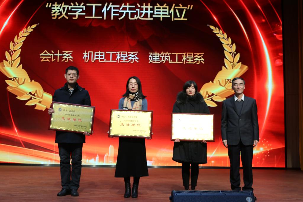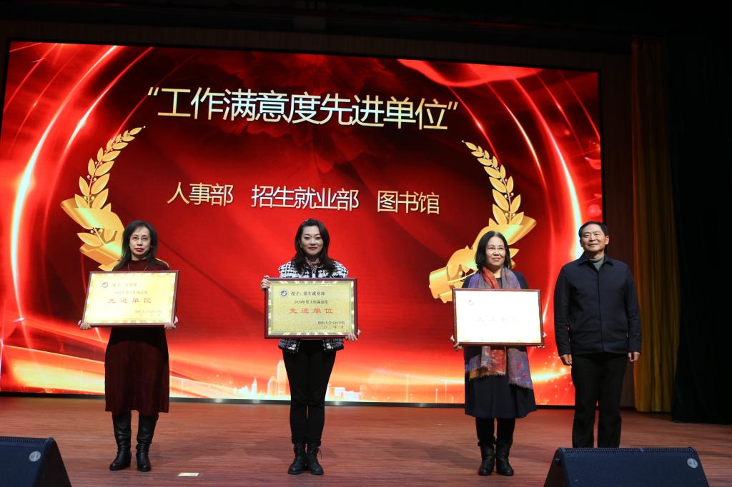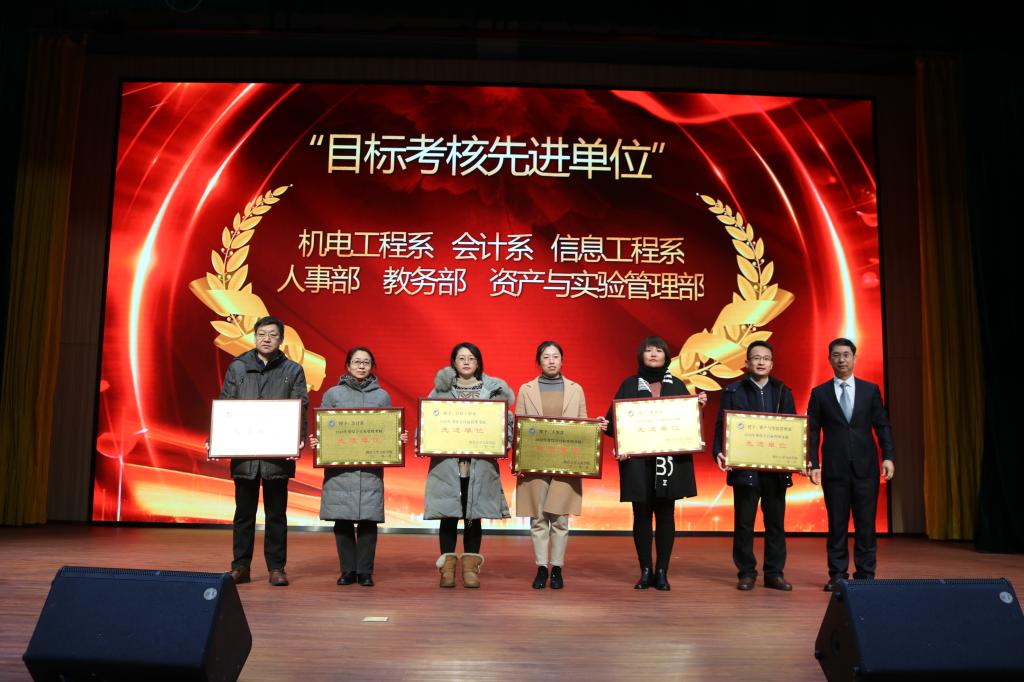 大会伊始,院长于光辉,副院长王宪杰、苏春景、辛连军、张仁杰、王培进,院长助理莫红菊、张中华为在2020年度各项工作中业绩突出的单位和个人予以表彰奖励并颁发荣誉奖牌。表彰包括“目标考核先进单位”“教学工作先进单位”“教学创新先进集体”“党建及学生工作先进集体”“工作满意度先进单位”“缴费工作先进单位”共六项先进团体奖以及“教学创新”“优秀教师”“优秀辅导员”“优秀班主任”“先进工作者”“防疫工作先进个人”“转设评估工作先进个人”共七项先进个人奖。本次表彰旨在鼓励先进,树立典型,激励引导广大教职员工积极进取的精神。
