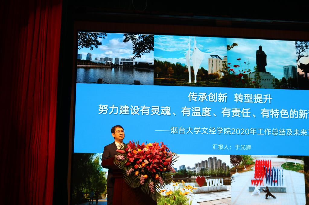 院长于光辉指出,2020年是烟台大学文经学院的“学习提升年”,是“十三五”规划收官、“十四五”规划编制之年,是全员抗疫防控的安全之年,是学院迎评转设的圆满之年。2020年学院聚焦立德树人根本任务,突出重点、统筹兼顾,开拓创新、锐意进取,在党建思想政治工作、教学改革、师资队伍建设、创新宣传工作机制等方面取得了令人瞩目的进步和发展。