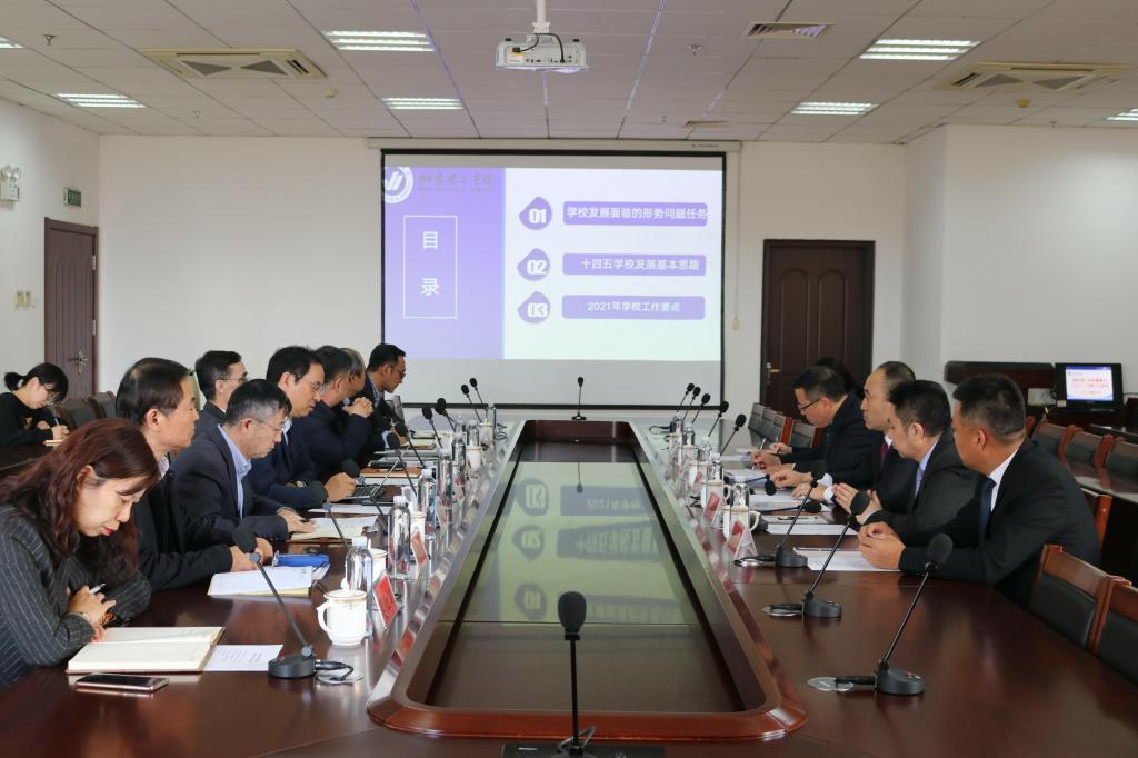 会上,曹世民董事宣读了董事会关于学校领导任命的决议。于光辉校长作烟台理工学院2021年工作报告《传承创新 转型提升 努力建设有灵魂、有温度、有责任、有特色的新型本科高校》,从学校发展面临的形势问题任务、“十四五”学校发展基本思路、2021年学校工作要点三个方面进行了具体阐述。张吉亮董事强调,学校要尽快落实“十四五”发展规划工作,凝聚共识,更好地服务于学校发展。