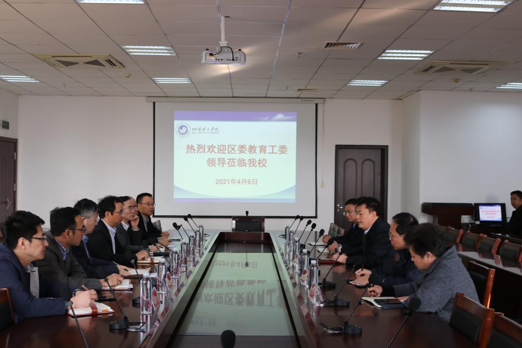 4月6日,莱山区区委常委、宣传部长、教育工委书记邴兴波,宣传部副部长李继东,教体局长刘恩杰、科技局长曲悦、工信局长于振浩一行莅临我校开展工作调研,学校领导班子及校办、科研处等部门负责人参与调研活动。