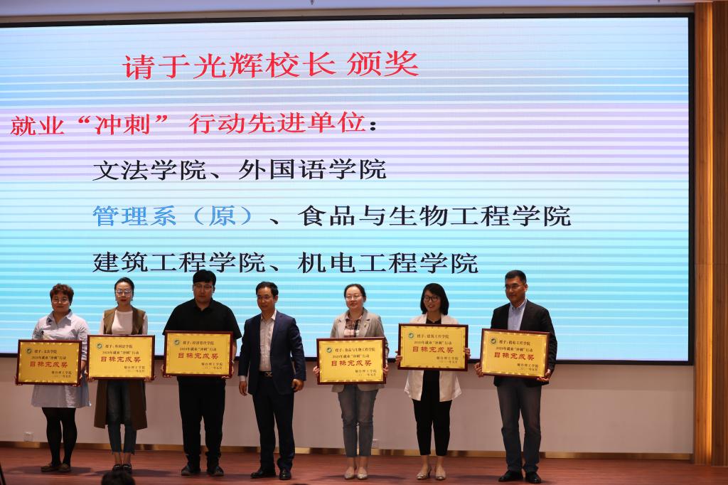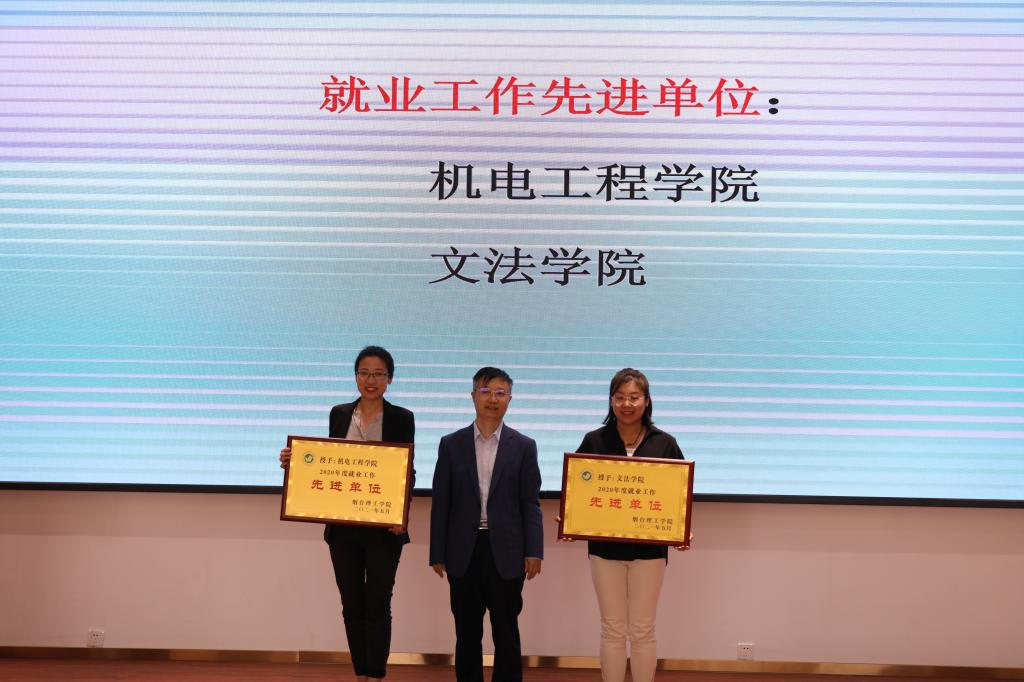 会上,副校长张仁杰宣读了《烟台理工学院关于表彰奖励2020年度就业工作先进集体和先进个人的决定》,校领导为获表彰的就业工作先进集体和个人颁发了奖牌。就业工作先进个人代表食品与生物工程学院副院长高娜、会计与金融学院辅导员韩旭艳先后作大会交流发言。