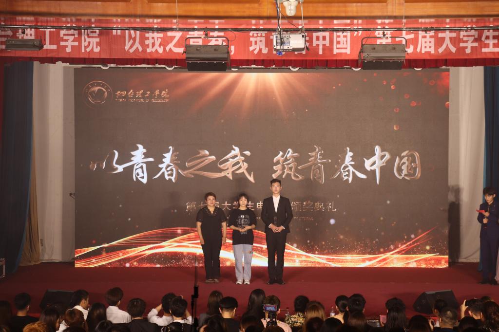 活动伊始,各剧组导演以及演职人员依次走过红毯,进入活动会场,伴随着精彩的视频,唯美的歌声,颁奖典礼正式拉开帷幕。经过前期的报名和投选,共有八支作品突破重围进入今天的总决赛,本次晚会共揭晓颁发了11项大奖。张开源、林俊静凭借影片中出色的表现分别斩获最佳男、女主角奖,韩弘毅凭借作品《变形计》获最佳导演奖,班誉瀚携作品《星河》获最佳编辑奖,任真以作品《明天见》斩获最佳制片人奖,金景涛、苏林阳分获最佳男、女配角;电影《重拾》获优秀影片奖,《“贷”价》获创新创意奖,《明天见》获最具人气影片奖,《柏舟》获最佳影片奖,《我的青春之路》获艺术成就奖,文法学院获最佳组织奖。颁奖现场播放了获奖优秀短片《明天见》向同学们展示了疫情期间的感动与坚守,引起了同学们极大的共鸣。颁奖间隙,劲爆的舞蹈和精彩的演唱,给现场观众带来视觉与听觉上的双重享受,将此次典礼的氛围再一次推向高潮。