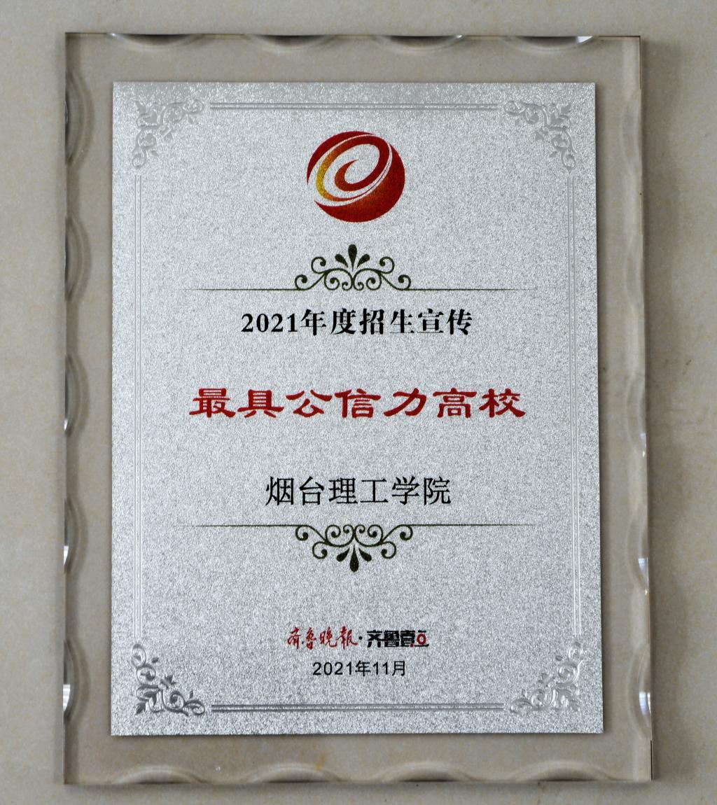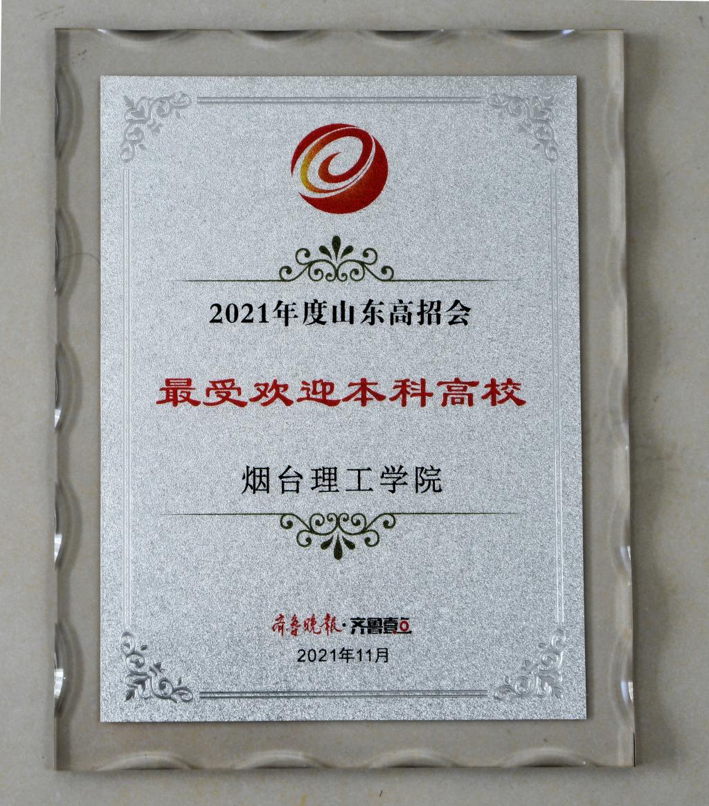近日,由齐鲁晚报·齐鲁壹点举办的山东高考交流会暨智库年会和颁奖典礼在山东新闻大厦隆重举行。烟台理工学院再次荣获2021年度招生宣传“最具公信力高校”,这是我校连续三次获得该奖项。并首次获得山东高招会“最受欢迎本科高校”荣誉称号。我校校长于光辉教授被聘为教育应用与传播研究中心“智库特聘专家”,招生就业处处长李洁获评2021年度“招生宣传创新奖”。