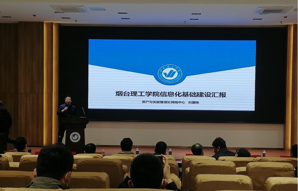 我校资产与实验管理处信息技术与网络管理中心刘国栋主任为本次会议做了“烟台理工学院信息化基础建设情况”报告,他从网络建设、信息系统建设、网络安全、发展规划等四个方面把我校的学生宿舍网络改造情况、核心机房建设情况、智慧校园三大平台的建设情况以及网络安全建设情况向现场的嘉宾做了介绍,并分享了我校在信息化建设方面遇到的问题及解决方案,随后新华三、深信服、一舟等知名企业专家分享了各自在信息化建设方面的理念,会后各位嘉宾及领导参观了我校新建的核心机房,各高校的领导及专家对我校信息化建设取得的成绩给予了充分的肯定。