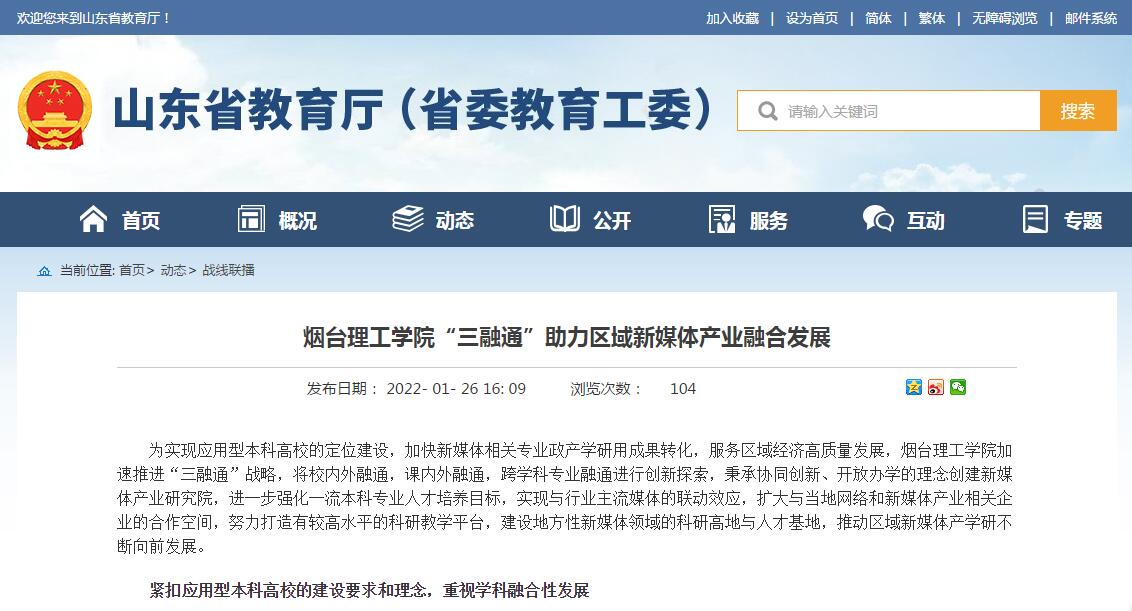为实现应用型本科高校的定位建设,加快新媒体相关专业政产学研用成果转化,服务区域经济高质量发展,烟台理工学院加速推进“三融通”战略,将校内外融通,课内外融通,跨学科专业融通进行创新探索,秉承协同创新、开放办学的理念创建新媒体产业研究院,进一步强化一流本科专业人才培养目标,实现与行业主流媒体的联动效应,扩大与当地网络和新媒体产业相关企业的合作空间,努力打造有较高水平的科研教学平台,建设地方性新媒体领域的科研高地与人才基地,推动区域新媒体产学研不断向前发展。