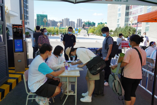 为落实常态化疫情防控要求,学校于校园入口处安排专人引导新生进入测温通道,同时查验报到学生的通信大数据行程卡和48小时内的核酸检测结果,入校后严格执行“三天两检”,构筑校园安全的“防护墙”。