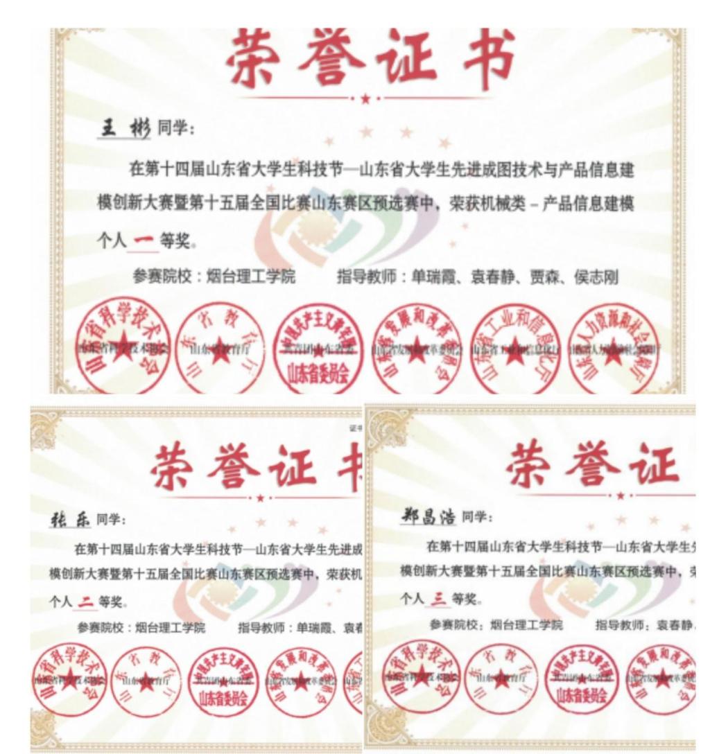 近日,山东省先进成图技术与产品信息建模创新大赛落下帷幕。我校机电工程学院单瑞霞、袁春静等教师指导的5支队伍在比赛中喜获佳绩,其中获团队奖二等奖1项,三等奖4项,个人奖一等奖2人、二等奖16人、三等奖5人。