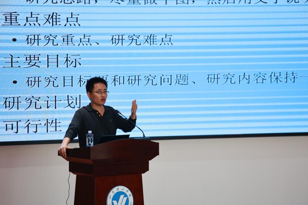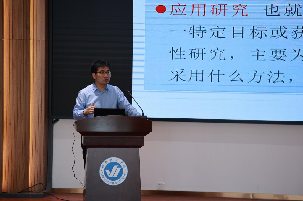 专题报告会上,赵少峰教授指出,研究方向与选题确定要依据自身研究专长和现有研究成果,保证选题的前沿性,做到简洁明了。他表示,论文课题要重视研究现状,突出问题意识,明晰主要架构,创新思路与方法,在研究成果的类型方面给予新的启发。魏雪峰教授结合自身研究经验,以丰富的案例基础,紧扣课题类别、选题依据、申报书撰写、课题设计论证、开题报告、预期成果等,阐述取得优秀成果的关键所在,理清院校研究的诸多要领。一句“把研究放在心上,产出高质量成果。”引起了到场教师的强烈共鸣。