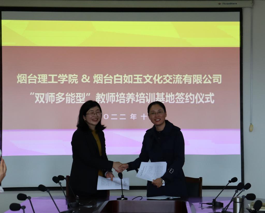 10月26日,我校外国语学院与烟台白如玉文化交流有限公司举行“双师多能型”教师培养培训基地签约仪式,院长刘白玉、常务副院长于巧丽、党总支副书记赵蓓、烟台白如玉文化交流有限公司副总经理孙明玉女士、院长助理张丽、专业负责人殷莉及各专业系主任参加了此次签约仪式,签约仪式由张丽主持。
