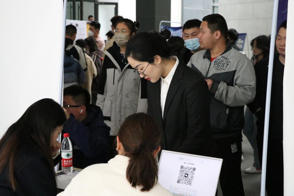 招聘会现场人头攒动,气氛热烈,毕业生参与热情高涨,积极就工作内容、岗位职责、发展前景、薪资待遇等与用人单位交流洽谈。毕业生普遍反映参会单位及招聘岗位质量较高,每家用人单位前都有多名毕业生排队咨询。