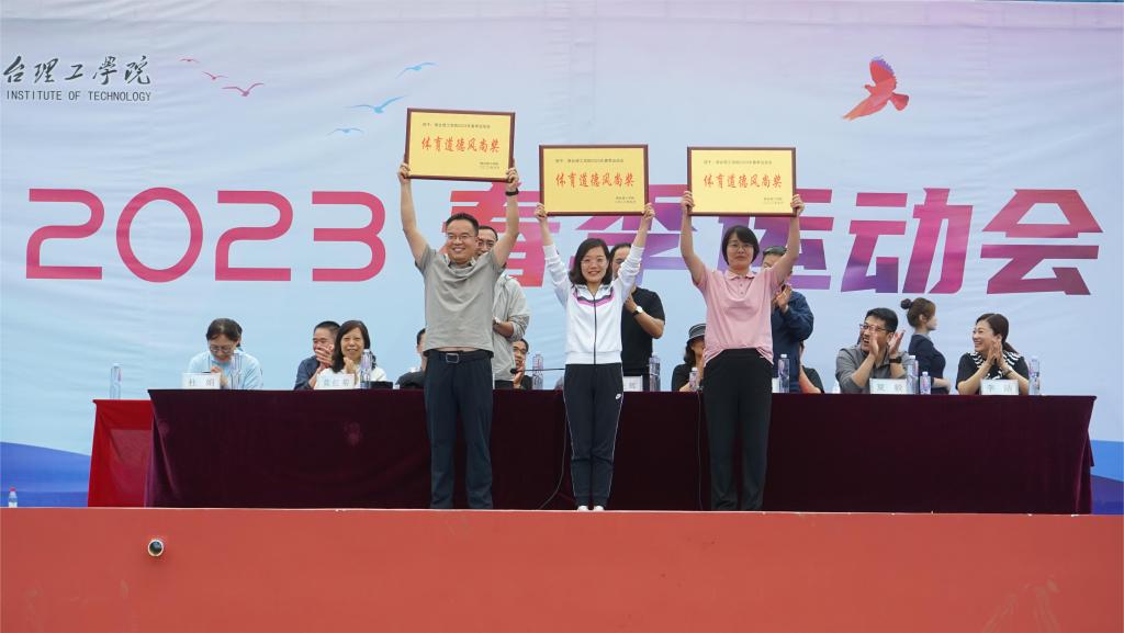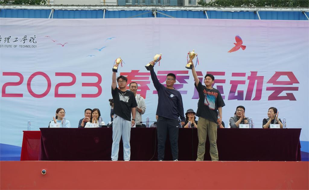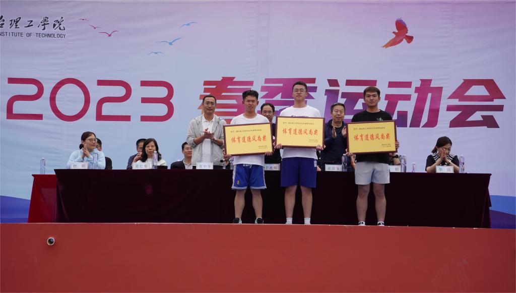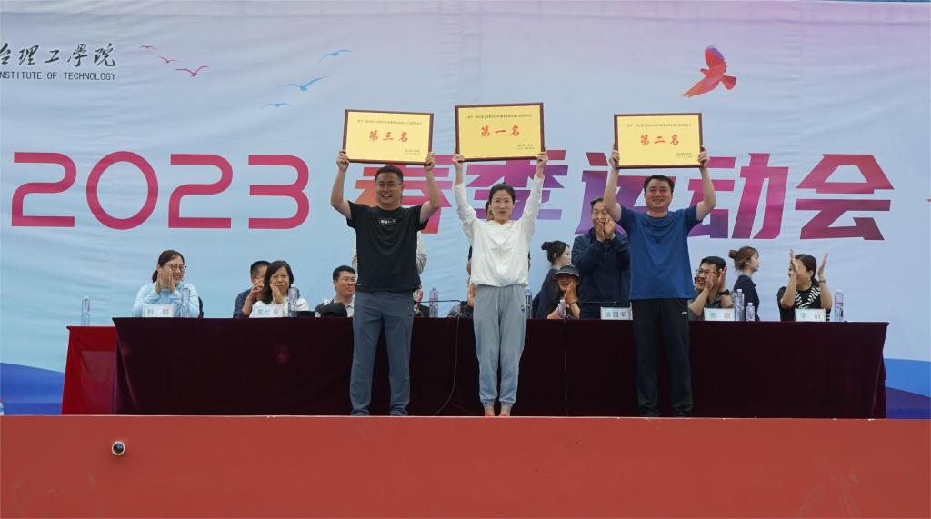 本次运动会历时两天,经过激烈角逐,获奖结果如下:男子学生组团体总分第一名经济管理学院、第二名机电工程学院、第三名信息工程学院;女子学生组团体总分第一名经济管理学院、第二名文法学院、第三名会计与金融学院;学生组团体总分第一名经济管理学院、第二名会计与金融学院、第三名文法学院;教工组团体总分第一名机电工程学院、第二名教工四队、第三名教工三队。机电工程学院、信息工程学院、建筑工程学院获学生组体育道德风尚奖,教工一队、信息工程学院、建筑工程学院获教工组体育道德风尚奖。公布完毕,校领导为获奖代表依次颁奖并表示祝贺。
