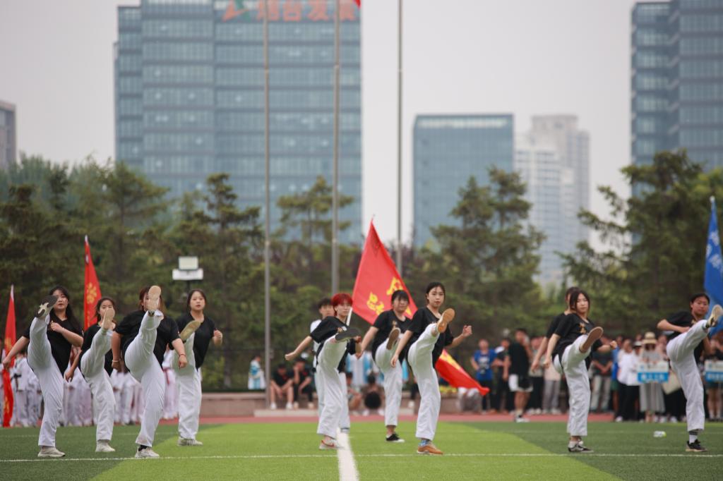 闭幕式上,长拳、太极剑、健美操等综合表演展现出莘莘学子朝气蓬勃的姿态与昂扬的精神风貌,精彩的表演引起全场热烈欢呼,将气氛引向高潮。