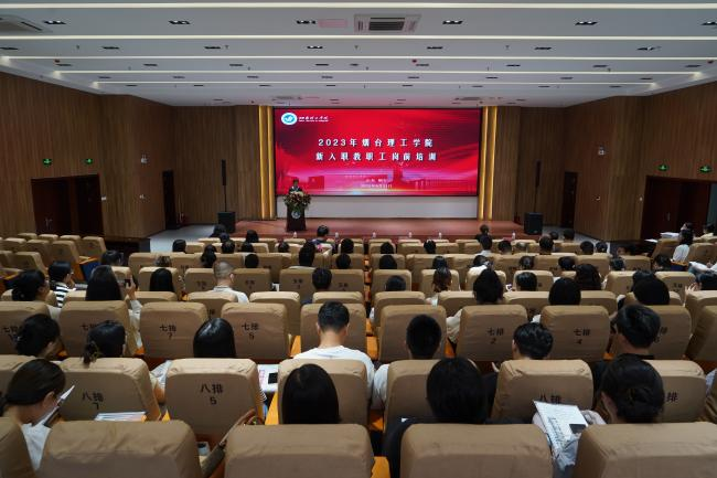 党委书记盛国军为新入职教师作了主题为《以习近平教育思想为指导,努力做新时代优秀教师》的报告,他结合自身丰富的教学与管理经验,向新教师阐释了新时代“四有”好老师的内涵与理念,鼓励新教师培养自身的道德情操,夯实自身的专业基础,树立明确的生涯规划,将教书和育人相统一,做奉献祖国的引路人。