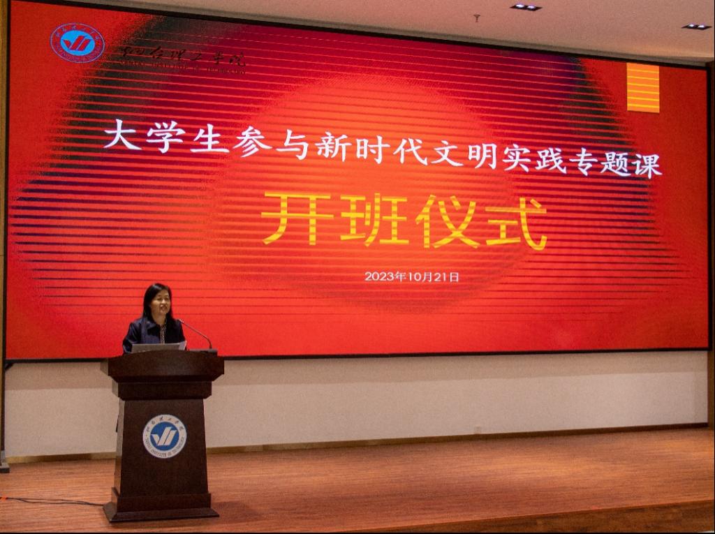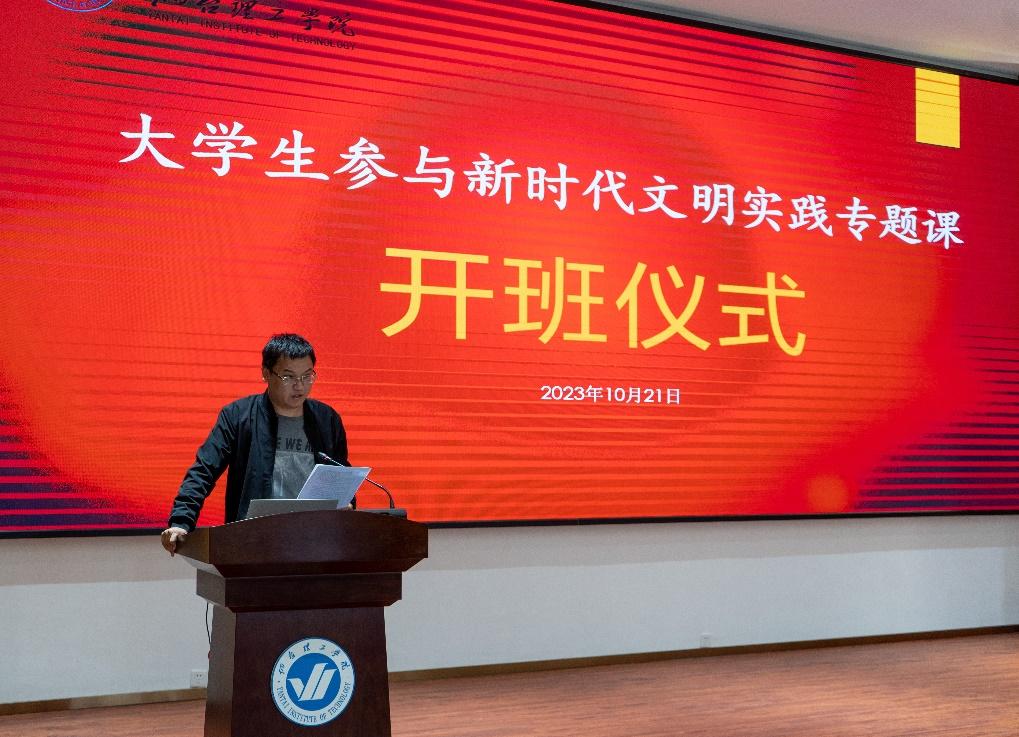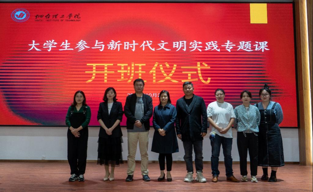 10月21日,在烟台理工学院驻黄渤海新区新时代文明实践中心的支持下,由黄渤海新区文明办委托我校研发全省首个面向高校的新时代文明实践课程—大学生参与新时代文明实践专题课在综合楼六楼报告厅举行开班仪式。黄渤海新区工委宣传群团部文明办副主任毕岸,烟台理工学院建筑工程学院院长辛翠香、副院长丛苏莉,中国少数民族声乐学会副会长马浩,数字媒体艺术专业主任潘萌,及数字媒体艺术专业教师出席开班仪式。开班仪式由辛翠香院长主持。