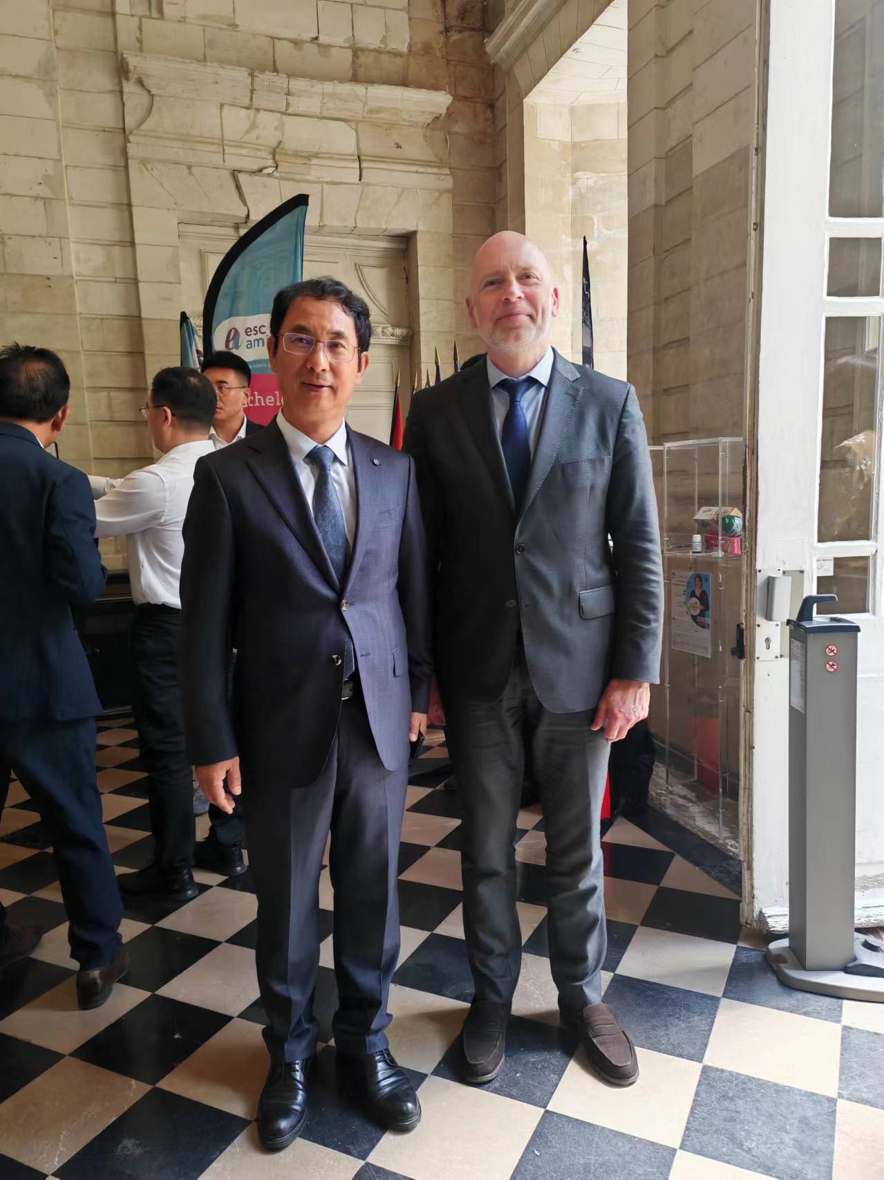 与亚眠荣誉市长、索姆省中小企业联合会主席帕斯卡-弗拉德古(Pascal FRADCOURT)合影