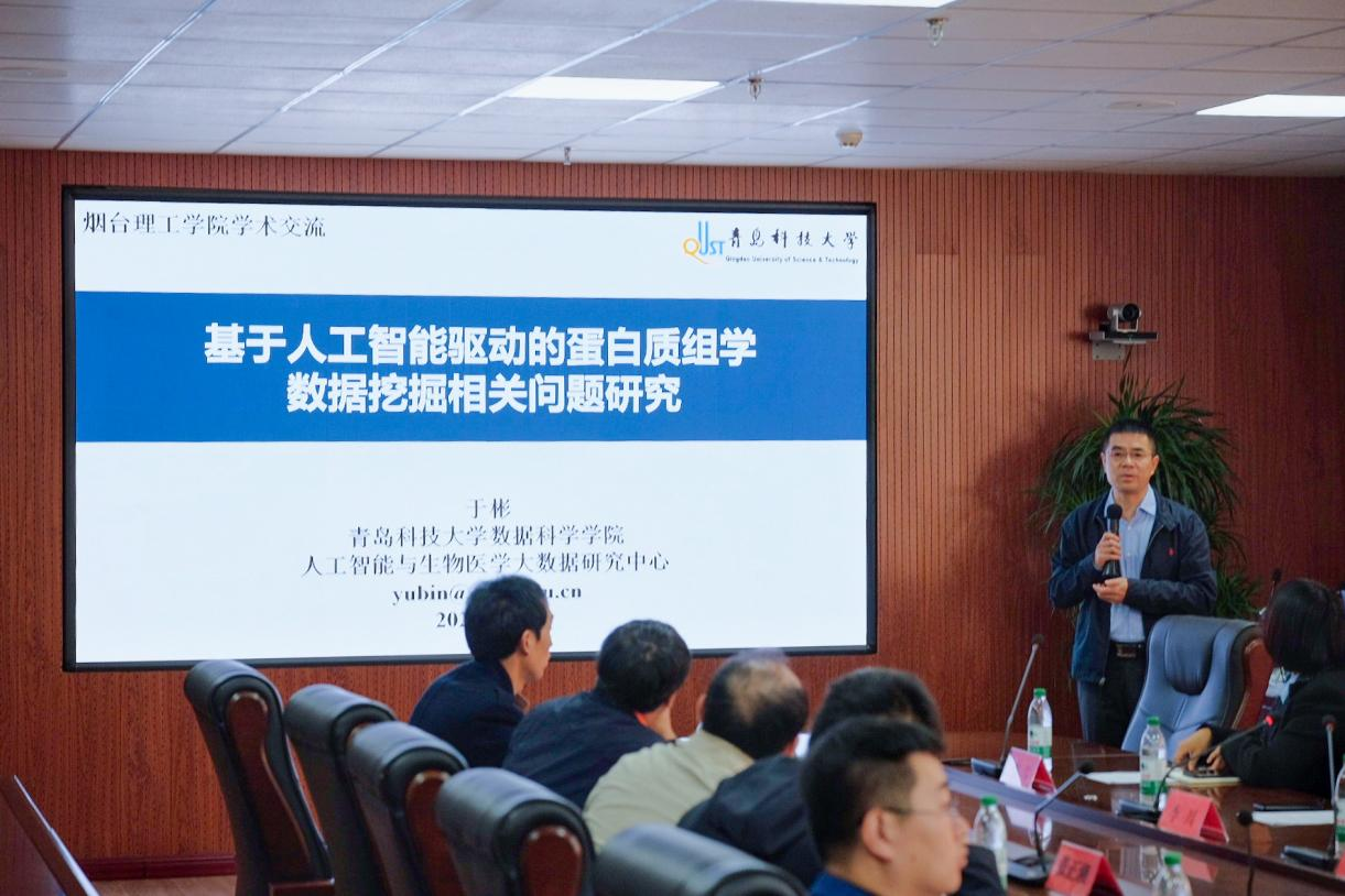 此次工作坊活动,我校邀请了青岛科技大学于彬教授作了“基于人工智能驱动的蛋白质组学数据挖掘相关问题研究”的主旨报告。报告中,于教授深入分析了大数据技术在医疗健康领域的实践案例,并探讨了高校与企业合作的前景,并强调,数据驱动的精准医疗是企业与高校共建的重点方向,引发了与会代表的广泛共鸣。