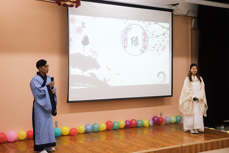 本次“中华诗宴”由文法系发起,与院团委联合举办,以“汉字拼写大会”为载体,以中华优秀经典诗词为内容,以爱国精神为核心,为全院学生搭建“以诗会友,共赏中华诗词之美”的平台。经过赛前初试的比拼,有6位选手脱颖而出进入总决赛,决赛设置“激扬文字·点点琅轩”、“天下兴亡·匹夫有责”、“文韬武略·笑傲群芳”、“情寄山海·还看今朝”四个篇章,在篇目设置上借鉴了如院试、会试、殿试和武举等传统科举制度的元素,各篇章穿插着汉字拼写、飞花令、才艺展示等多个环节,并采用填空题、常识题、主观题等多种题型,考察选手对诗词的积累情况和反应能力。