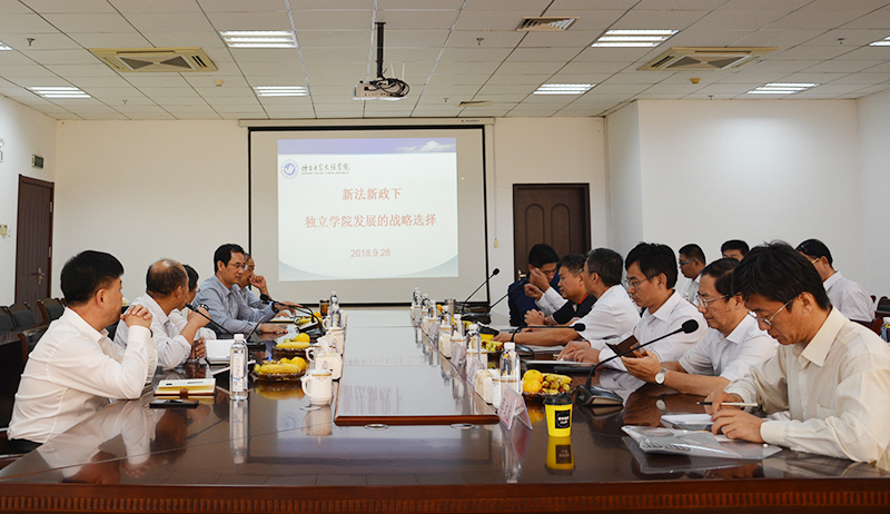 论坛以“共同探讨新法新政下独立学院发展的战略选择”为主题,切合了当前独立学院发展亟需探讨的问题。马杰会长介绍了全国独立学院的现状、特色与优势,分析了独立学院在贯彻新法新政时面临的问题,发表了自己的看法和体会。马会长的发言引起了与会领导的热烈讨论,大家各抒己见,从人才培养模式、教育教学改革以及作法和经验等方面,畅谈了对新时代下独立学院如何发展的思考。