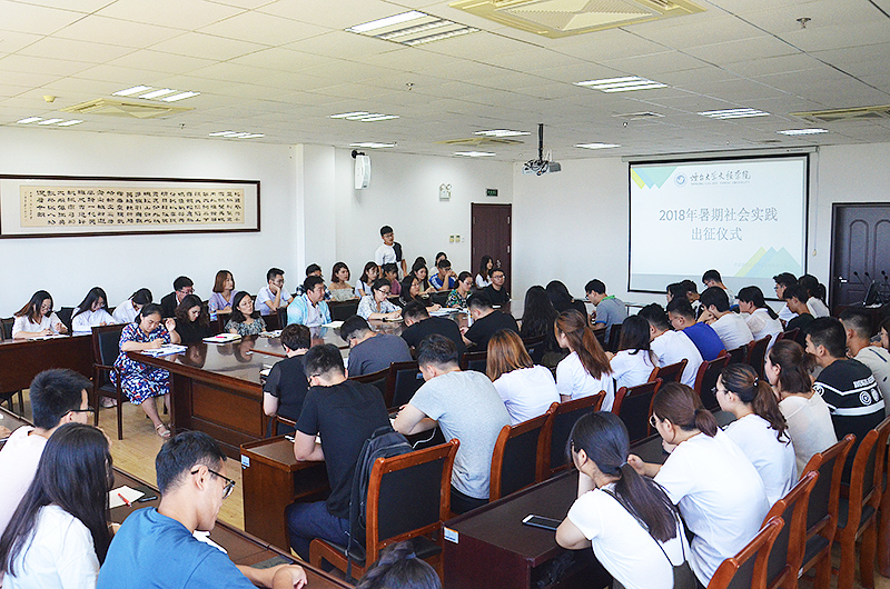 6月28日上午,2018年暑期社会实践团队出征仪式在二教六楼会议室举行。党委副书记李荣梅,团委书记毕海平,各系团总支书记、副书记以及各实践队师生代表参加了出征仪式。