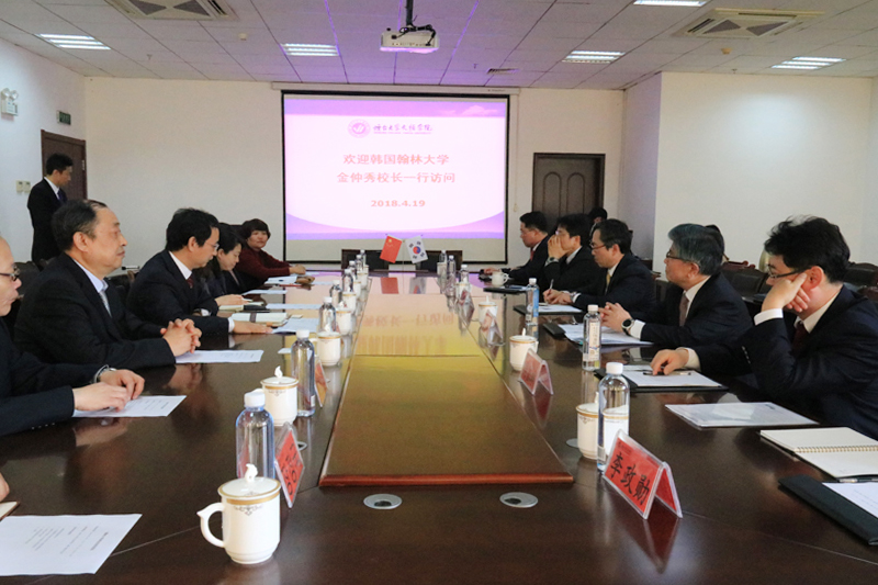 金仲秀校长在会谈中介绍了翰林大学的办学理念、办学模式和专业建设情况。他表示,两校同属年轻高校,可以广泛而快速地汲取其他高校的办学经验。金校长从拓展新的教育项目,加强师生学术交流与合作,增加留学生数量等方面提出了自己的建议和想法,并对双方今后合作寄予了美好愿景。